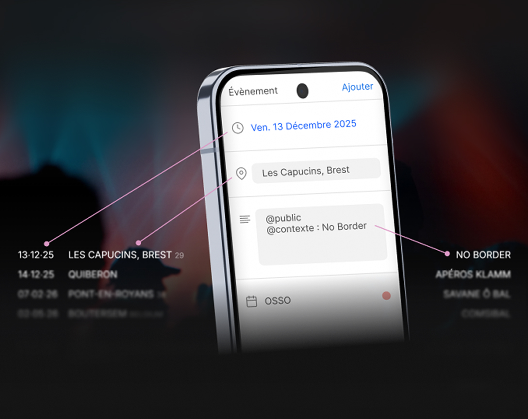 Rendez vos dates accessibles hors des réseaux (tout le monde n'y est pas), et faites gagner du temps à votre public et aux programmateur.ices